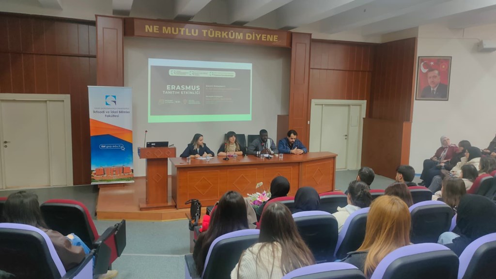 Fakültemiz tarafından Kariyer Planlama Dersi Etkinlikleri kapsamında, Dr. Öğr. Üyesi Yağmur DÖNMEZ’in moderatörlüğünü yaptığı, Üniversitemiz Erasmus Koordinatörlüğü’nden Dr. Öğr. Üyesi Esengül UZUNOĞLU ile Siyaset bilimi ve uluslararası ilişkiler lisans öğrencileri Bara MBOUP ve Alperen ŞAHİN’in konuşmacı olarak yer aldıkları “Erasmus Tanıtım Etkinliği” gerçekleştirildi. İİBF Şehit Birol Yavuz Konferans Salonu’nda gerçekleşen akademik personelimiz ve öğrencilerimiz katıldı.